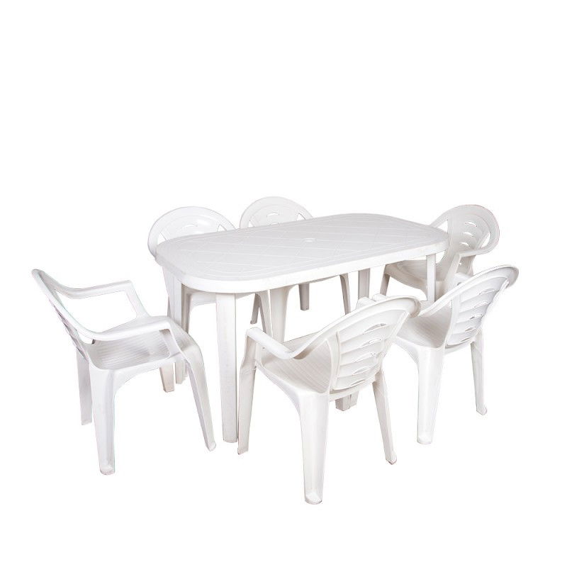 Műanyag asztal + 6 db szék (bordó)